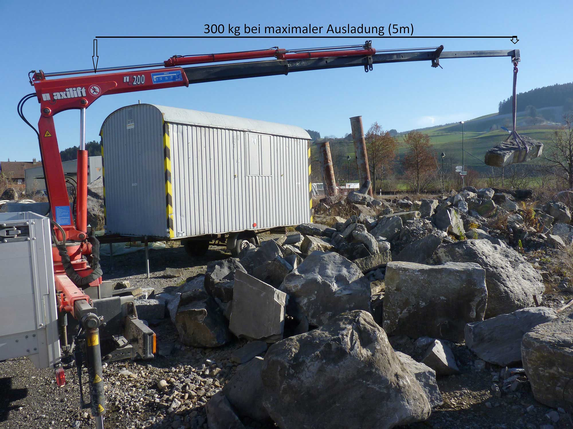 - Nutzlast Kran 300 kg bei max. Ausladung (5 m)