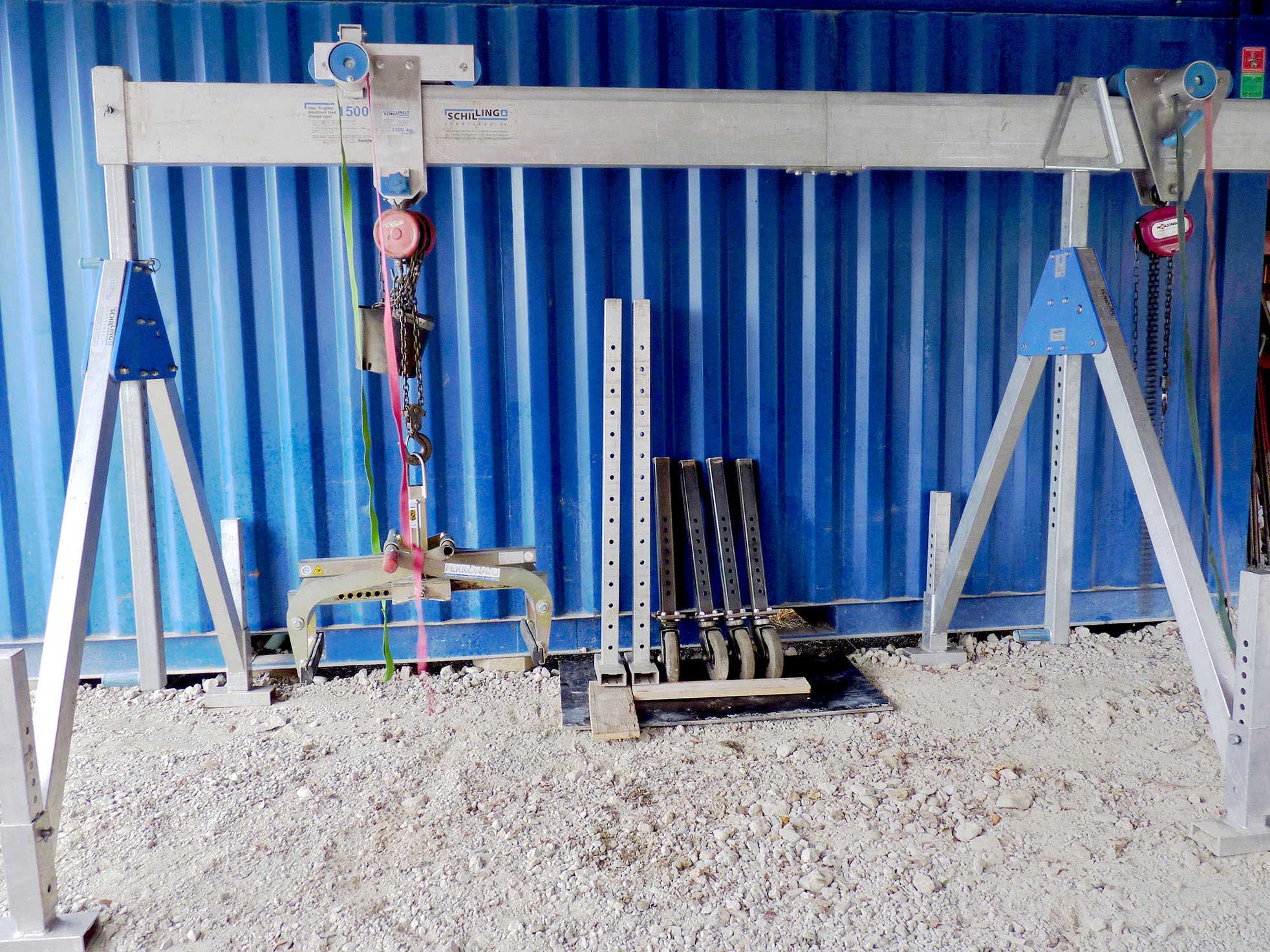 - Durch das Montieren der Transportrollen, ist der Kran auch mobil einsetzbar